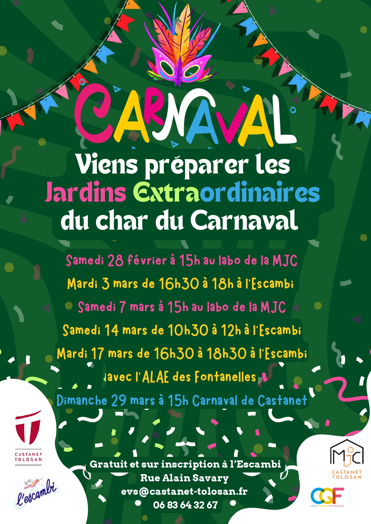 Viens participer à la création des Jardins Extraordinaires du char du Carnaval de Castanet-Tolosan.
